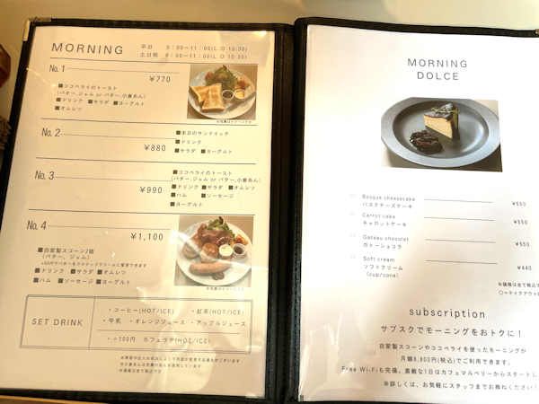 モーニングのセットメニュー4種類の他に、モーニング・ドルチェもあります。