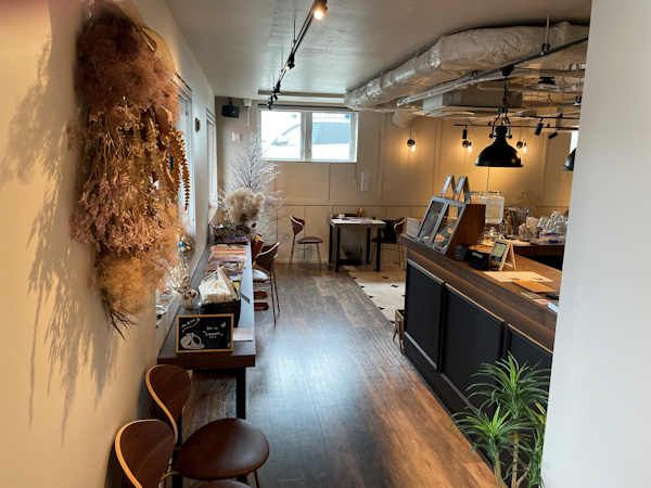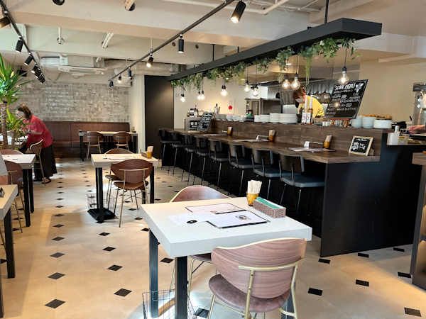 店内はL字になっていて奥に進むと広く、席間もゆったりととられています。素敵なインテリアや心地よいBGMに包まれた空間は、居心地の良さを感じます。無料Wi-Fiがつながっており、パソコンやスマホを見るにも便利。