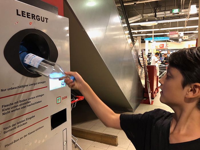 こちらでは「プファンド」というシステムが一般的で、全てのペットボトル商品は値段の上に0.25ユーロ(25セント)を購入時に余分に支払うように決められています。それは空のペットボトルがゴミになるのを防ぎ、積極的にリサイクル品として回収できるようにするためで、飲み終わったボトルを指定の場所に返却すると、その25セントが手元に戻ってくるという仕組みになっているのです。