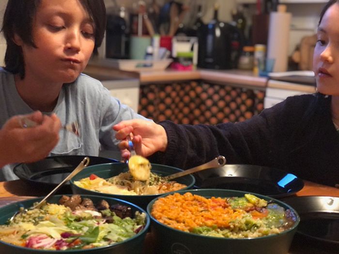 早速リユース容器にいっぱいのお惣菜をそのまま食卓に並べてお夕飯に! 楽ちん!