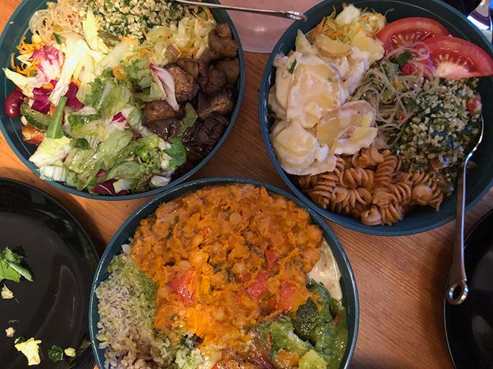 これがベジタリアンレストランでテイクアウト用に使われているリユース容器。この店だけでなく街中の色んな店で使えて返せて便利!