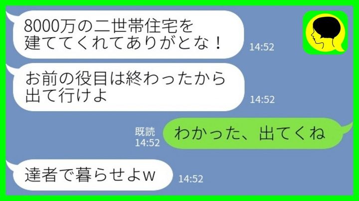 「だから用済みのお前は新居に来るなよ。お前にはこの家で暮らす権利はないんだからな」