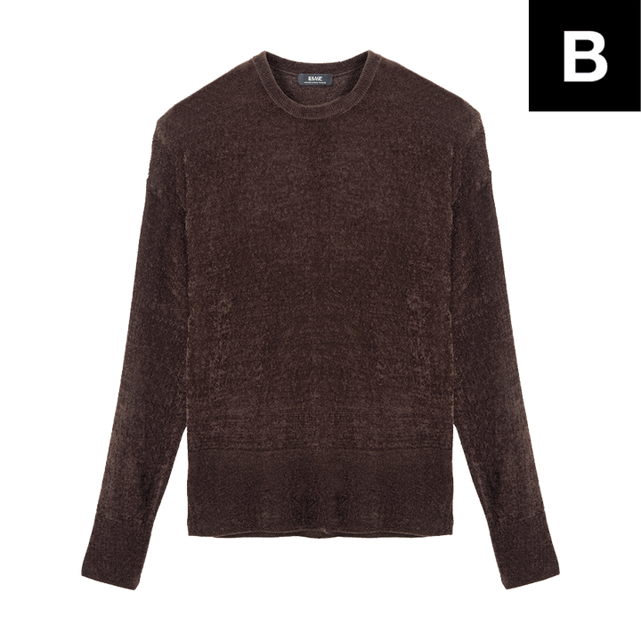 デニムスタイルに女性らしさをプラスする意味で、プルオーバーはベロアをチョイス。トレンドカラーのブラウンを。¥17,050(ジャーナル スタンダード レサージュ/ジャーナル スタンダード レサージュ 丸の内店)