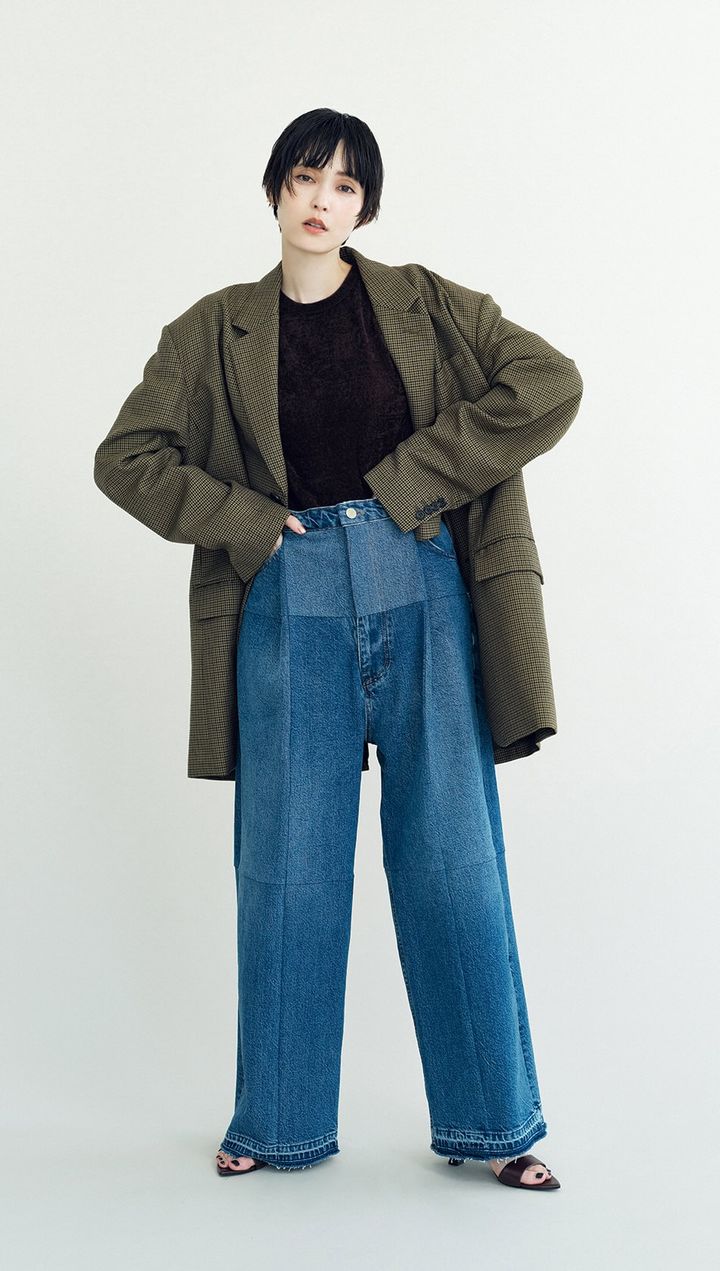 3. 【比留川游が着るデニムコーデ】ディテール満載パンツはビッグジャケット合わせでモードにが正解!