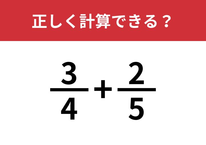 分数の足し算ってどうやるんだっけ?「(3/4)+(2/5)」正しく計算できる?