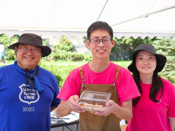 こちらは千葉と横浜から参加されたご夫妻とシェフ。なんとご夫妻のご子息がワイナリーで働いているとのことで、憧れだった余市ラフェトに今年初めで参加出来たそうです!幸せオーラ全開でした(笑)