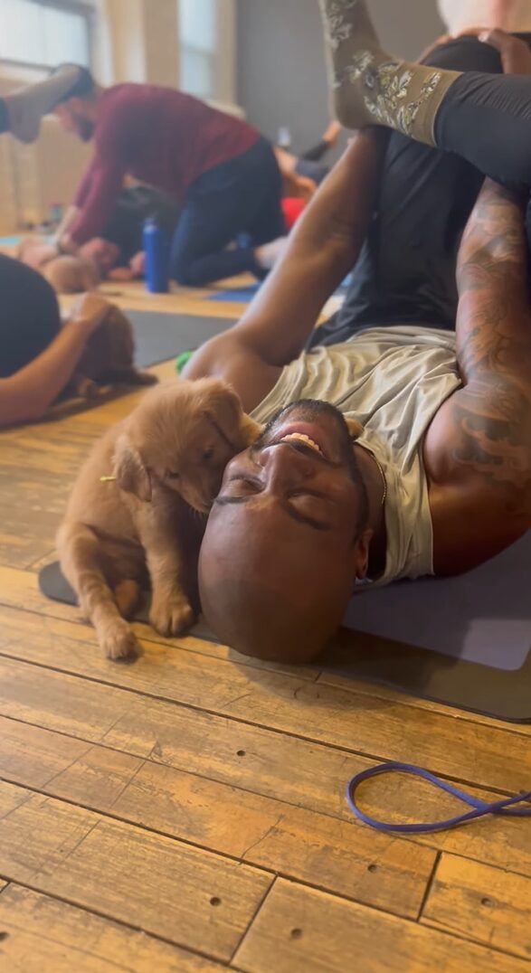 3. 体もほぐれ心癒されるドッグヨガだけど・・子犬が懐きすぎて心はとろけるけどヨガに集中できない!?【海外・動画】