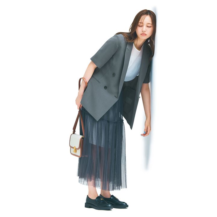 梅澤美波ちゃん主演!二日酔いをジャケット+華やかスカートで誤魔化す日のコーデ【着回しDiary DAY26】