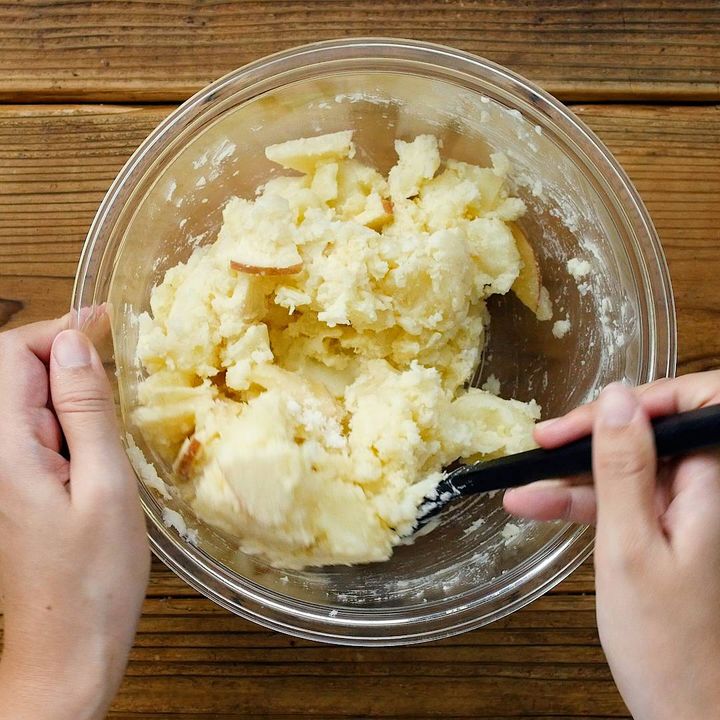 りんごは皮つきのまま使うので、酸化しないようにカットしたらすぐに混ぜるか、酢水にさらすのもおすすめです。