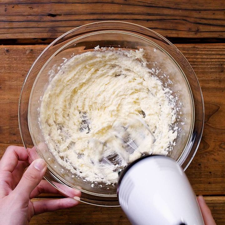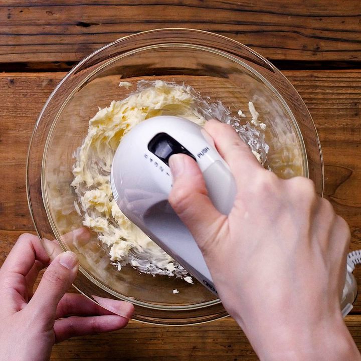 4: 別のボウルにバターを入れ、なめらかになるまでハンドミキサーで混ぜます。