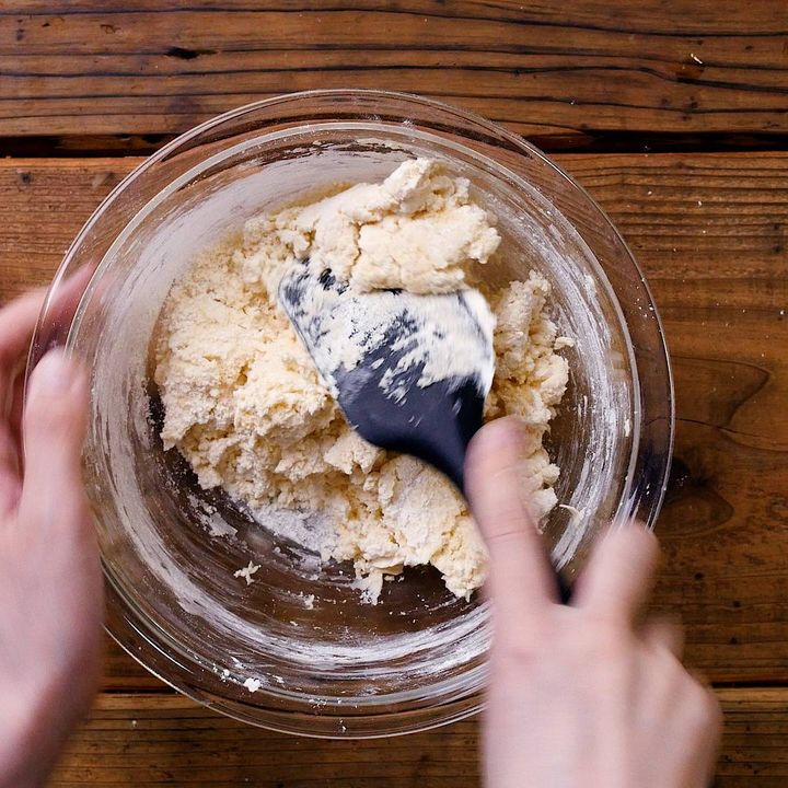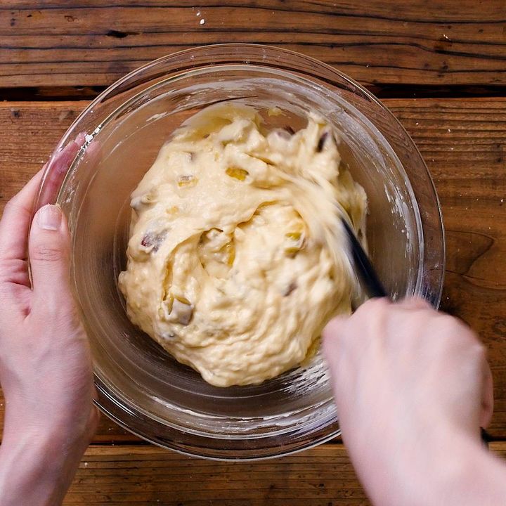 粉類を加えたら混ぜすぎないのが、ふんわり仕上げるポイントです。粉気がなくなって全体にツヤが出たら手を止めてくださいね。