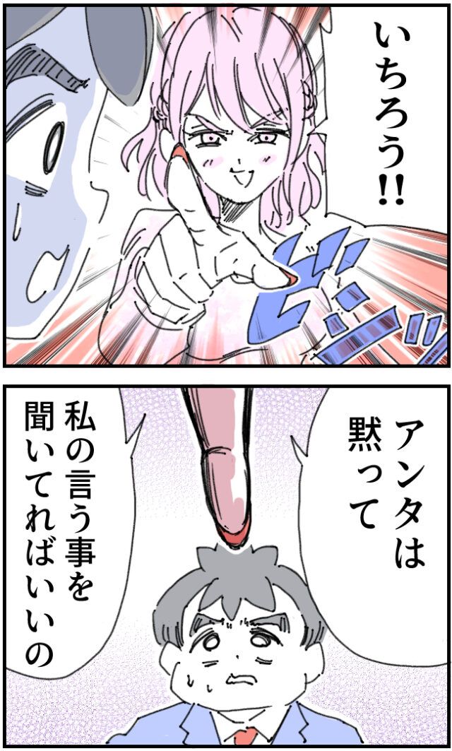 そして、突然いちろうさんを指差して「いちろう!!アンタは黙って私の言うことを聞いてればいいの」と命令する白石さん。