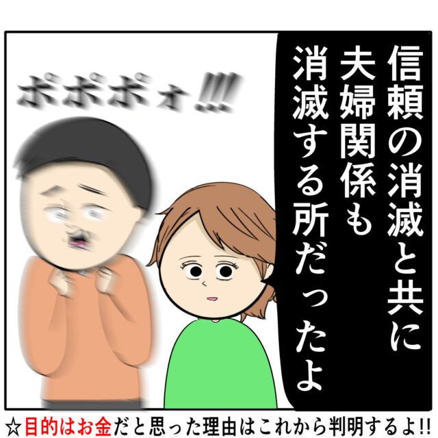 「信頼の消滅と共に夫婦関係も消滅する所だったよ」深く反省した様子の良し男さんに、すみれさんがトドメの一言。もう少しで夫婦関係が終わってしまうところだったと知った良し男さんは震えあがります。