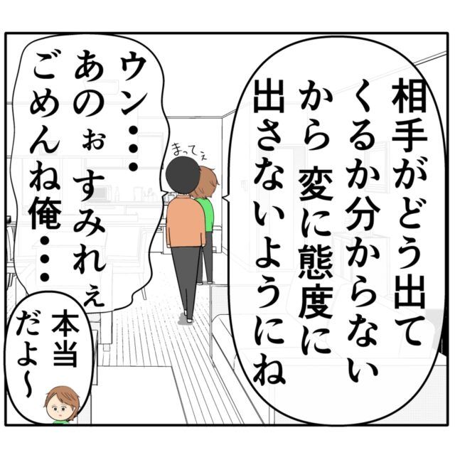 「相手がどう出てくるか分からないから、変に態度に出さないようにね」良し男さんを心配してアドバイスするすみれさん。良し男さんは「ウン・・・あのぉすみれぇ、ごめんね俺・・・」と頭が上がりません。