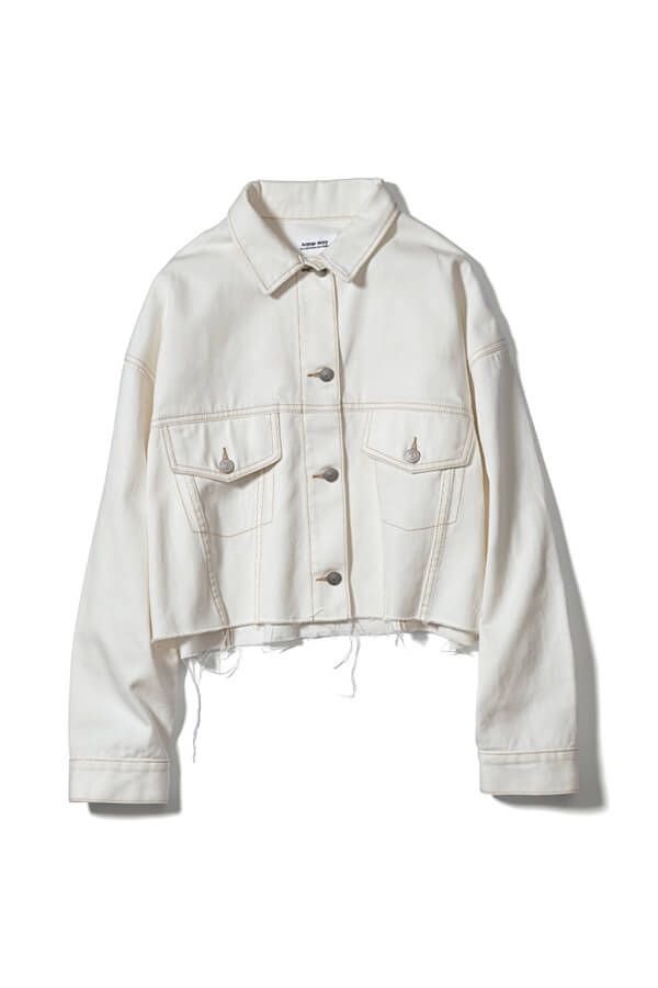 フェミニンコーデになじみやすい白デニム! コンパクトな着丈でボトム選びも難なくクリア♪ スタイルアップにもひと役。