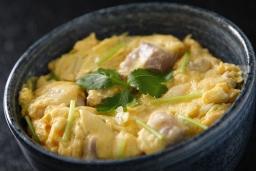 親子丼に使っている鶏むね肉は、カットして酒と一緒にチャック付きビニール袋に入れたものを冷凍し、前日に冷蔵庫へ入れて解凍したものを使っています。食事制限があっても、楽しく食べられるお気に入りメニューの一つです。