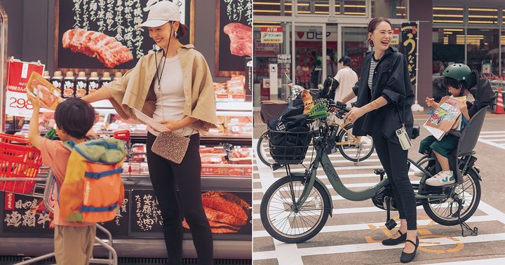 [ママ]シャツ¥27,500(ハウント/ハウント代官山/ゲストリスト)タンクトップ¥5,940(ミラ オーウェン/ミラ オーウェン ルミネ新宿2 店)レギンス¥23,100(ポロ ラルフ ローレン/ラルフ ローレン)ピアス¥30,800(ブランイリス/ブランイリス トーキョー)バングル¥24,200(ヴァンドームブティック/ヴァンドームブティック 銀座三越店)バッグ¥15,400(ノマディス/ノーベルバ)スマホケース¥8,800(ajew)シューズ¥18,150(オッフェン/オッフェン ザ ハウス ダイカンヤマテン)[子ども]トップス¥8,800パンツ¥12,100(ともにロンハーマン)ソックス¥440(靴下屋/Tabio)スニーカー¥19,800(VEJA/シードコーポレーション)自転車¥199,000(パナソニック/パナソニック サイクルテックお客様ご相談窓口)