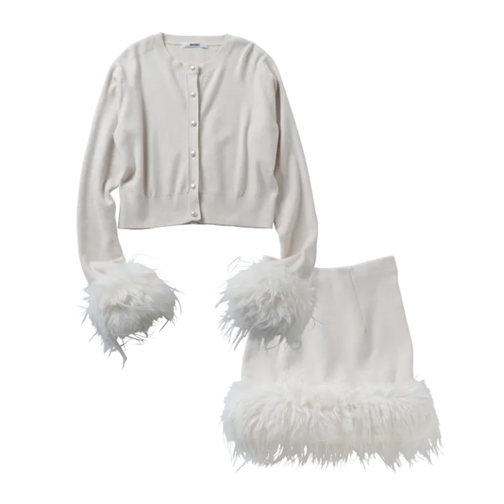 そでファーカーディガン 14,960円、同素材ミニスカート 12,540円/ともにSNIDEL