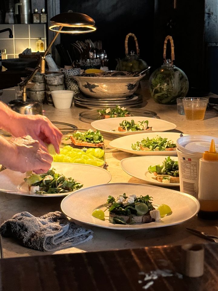 シャインマスカットにゴルゴンゾーラ、クレソンにハチミツをたっぷり🍯