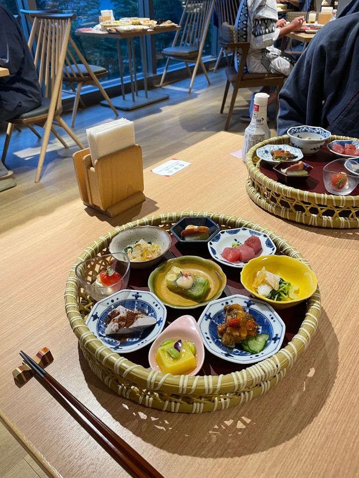 夕食はブュッフェで、籠に小鉢を取っていくスタイルが新鮮でした✨