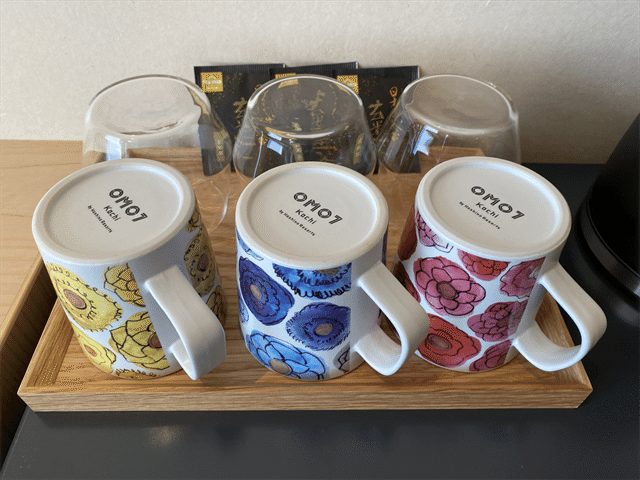 ホテルに泊まると気になるのがアメニティ。OMO7高知では、フロント横に置かれたアメニティから、自分の必要なものをピックアップしていくスタイル。歯磨きセット(大人・子ども)、ヘアブラシ、ヘアゴム、綿棒、コットン、ボディタオル、カミソリが用意されています。