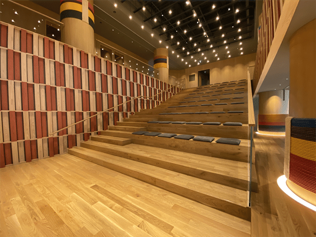 オーダーしたものは、カフェ内だけでなく、同じフロアにある大階段やラウンジでくつろぎながら楽しめます。