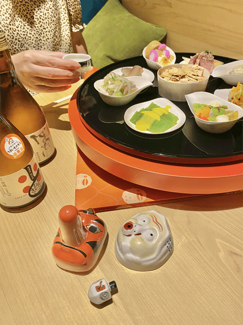 お部屋で高知のおきゃく文化を楽しめる「酔っちょれセット(2人前4,800円)」も用意されています。高知の郷土料理をアレンジしたおつまみに、高知の地酒2本、べく杯(高知のお座敷遊びで使われる盃)がついてきて、お部屋で宴会が楽しめます。