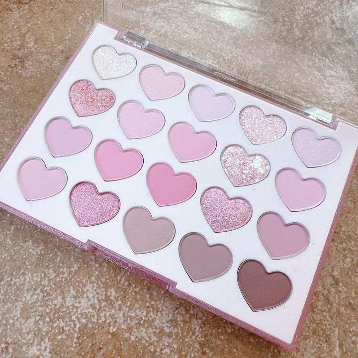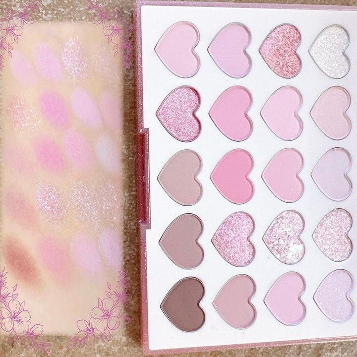 トーン別のピンクシェードにハートのフラットグリッターを加え、愛らしさ溢れる