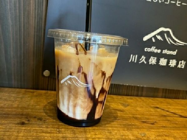「アイスカフェモカ」チョコレートソース、ミルク、コーヒーの順に層になってます。コーヒーが苦手な方や若い人に人気のメニュー