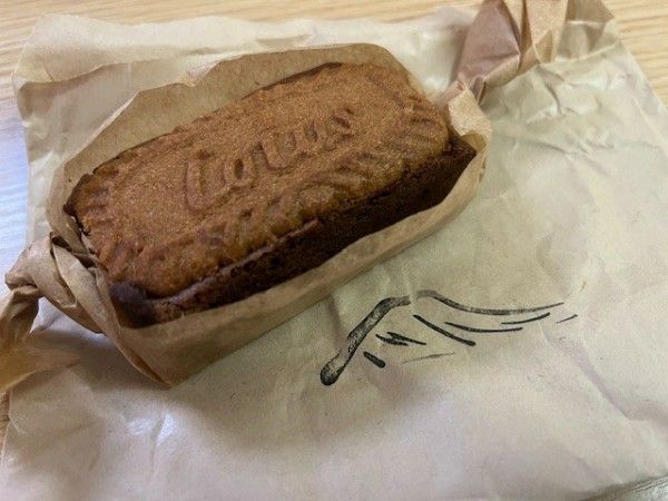 ロータスブラウニーは、上にLotusのビスケットが乗っていて、ブラウニーの濃厚なチョコレート味にカラメルの風味が見事にマッチしていて、ずっしりとした食感。