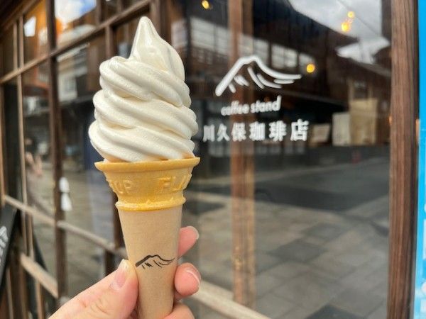 ソフトクリームはミルクコーヒー味。甘さの中にほろ苦さがあって、後味すっきり!