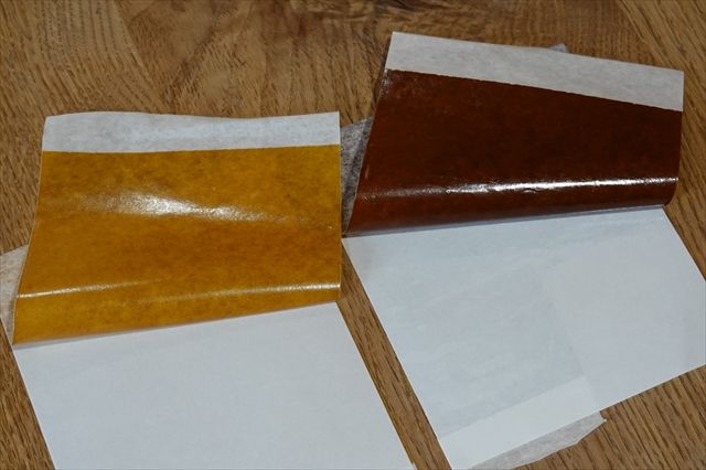 奥田家下呂膏の特徴といえば、なんといってもその渋い色! 一般的な貼り薬の湿布は、白やベージュを連想しますが、奥田家下呂膏は茶色がかった黒色です。