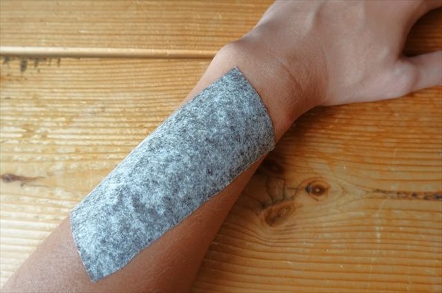 貼ってみると直接的な冷たさはあまり感じませんが、どこかひんやりとした感覚があります。貼る際には、汗や汚れをふき取ってからしばらく手で押さえておくと体温でピタッとくっつきます。