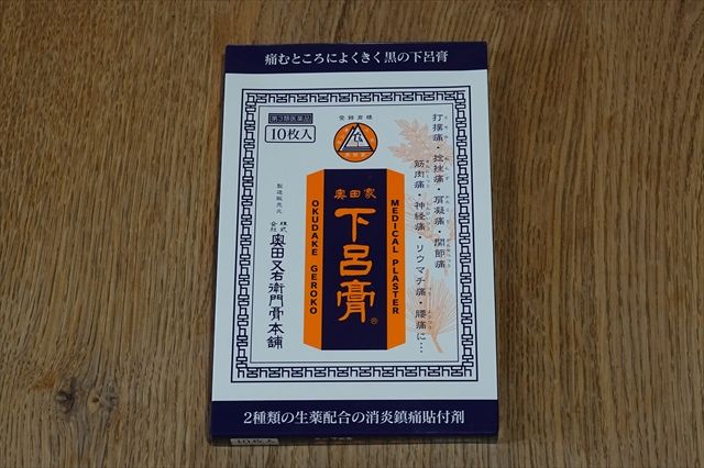 奥田家下呂膏の商品説明を見てみると、打撲痛、捻挫痛、肩こり、腰痛などに効能または効果があるとのこと。