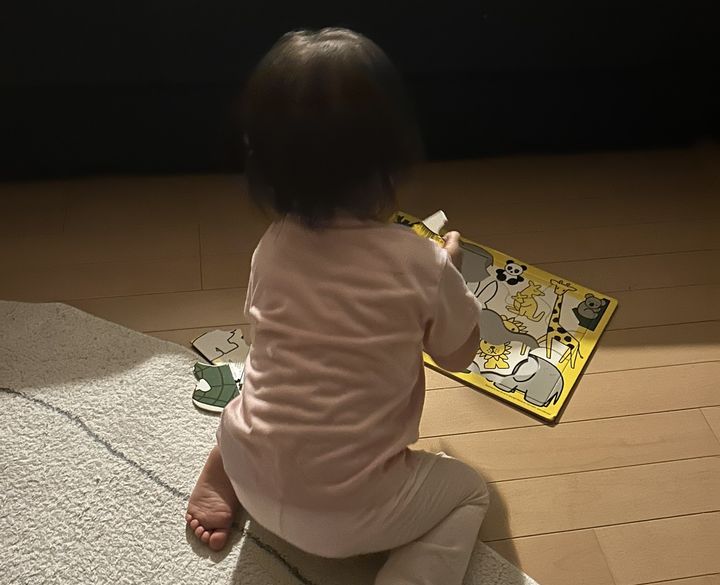 ※画像は朝4時半のまだ暗い中パズルをする娘