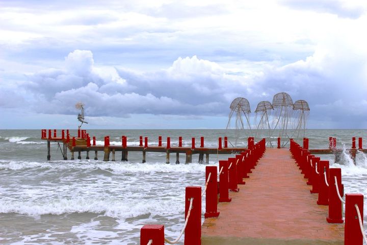 フーコック島にある人気のビーチ「Sunset Sanato」は、美しい夕日を眺めることができるスポット。ここには、写真映えするアートや彫刻が点在しているんです。
