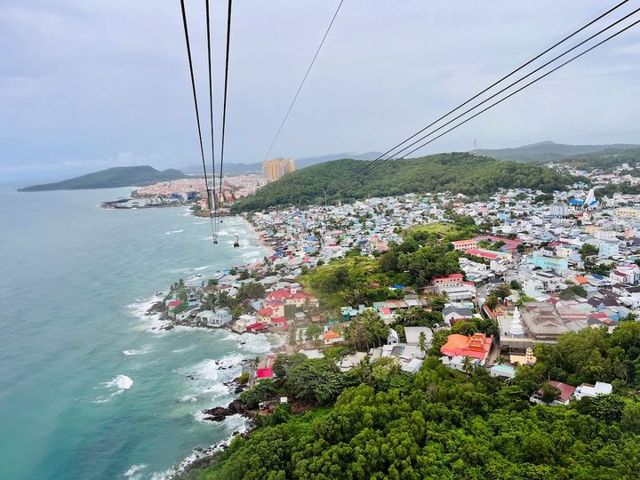 最高到達地点は海抜174mもあり、150mでマンションの高さ50階分に相当すると考えるとなかなかの高さ。ロープウェイからは、フーコックの街並みや海、ホンロイ島やホンドゥア島などの小さな島々の景色を見ることができます。