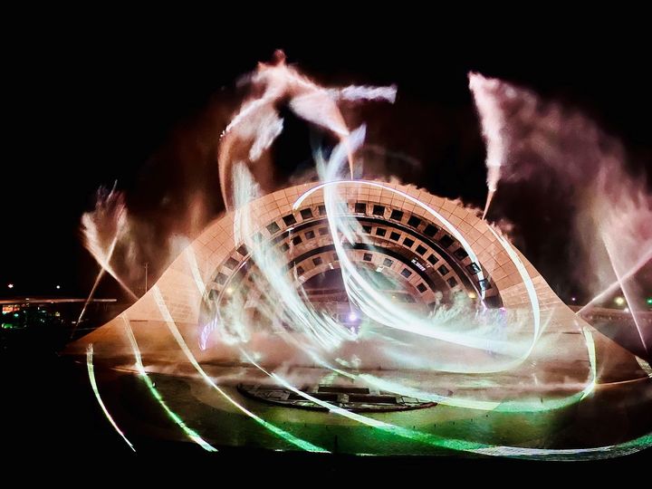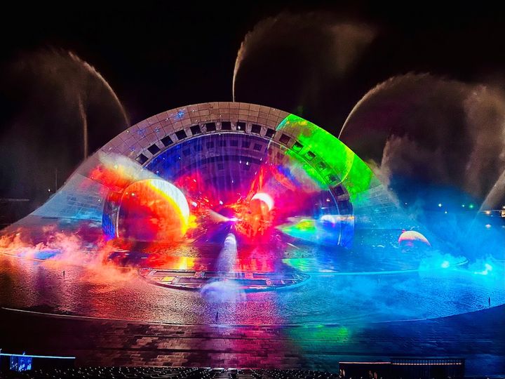 今はオフシーズンのため、ダンサーなしでの公演になっていますが、水がスクリーンなので、ディスプレイがどこまでも広がる…! 火も噴き出たり、音楽にあわせてレーザーが出たりとすごい迫力です。ほとんど音楽と映像でストーリー展開が進むので言語が分からなくても楽しめます。