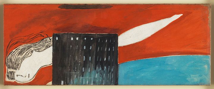 ルイーズ・ブルジョワ 《堕ちた女[ファム・メゾン(女・家)]》 1946-1947年, 油彩, リネン, 35.6×91.4 cm撮影:Christopher Burke© The Easton Foundation/Licensed by JASPAR, Tokyo, and VAGA at Artists Rights Society (ARS), New York