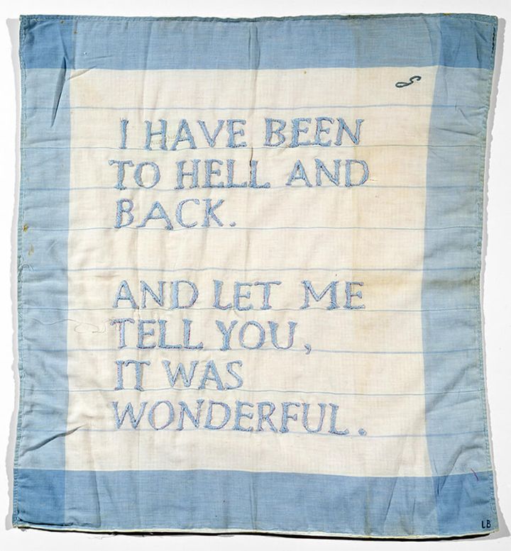 ルイーズ・ブルジョワ 《無題(地獄から帰ってきたところ)》 1996年, 刺繍, ハンカチ, 49.5×45.7 cm撮影:Christopher Burke© The Easton Foundation/Licensed by JASPAR, Tokyo, and VAGA at Artists Rights Society (ARS), New York