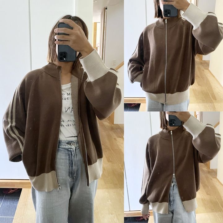 5月末に受注販売が決定された、インフルエンサーPenさんコラボのニットがやっと店舗に入荷したので、購入してきました! 袖のラインがジャージライクで、トレンドデザインなニットジャケットです♪