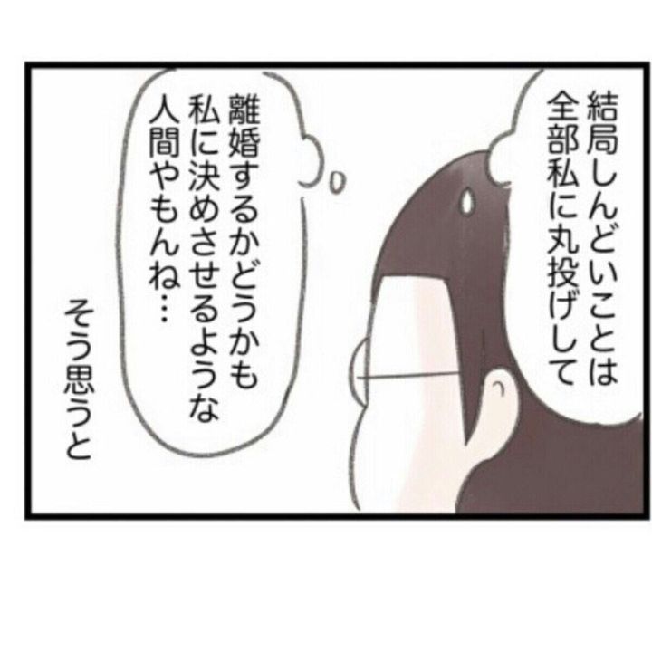 以前はやさしいところもたくさんあった夫のことを思い、歩み寄ろうとしたこっさんですが、今の煮え切らない夫の姿を見ていると、イライラの方が勝ってしまい全てがバカバカしく思えてきた様子。