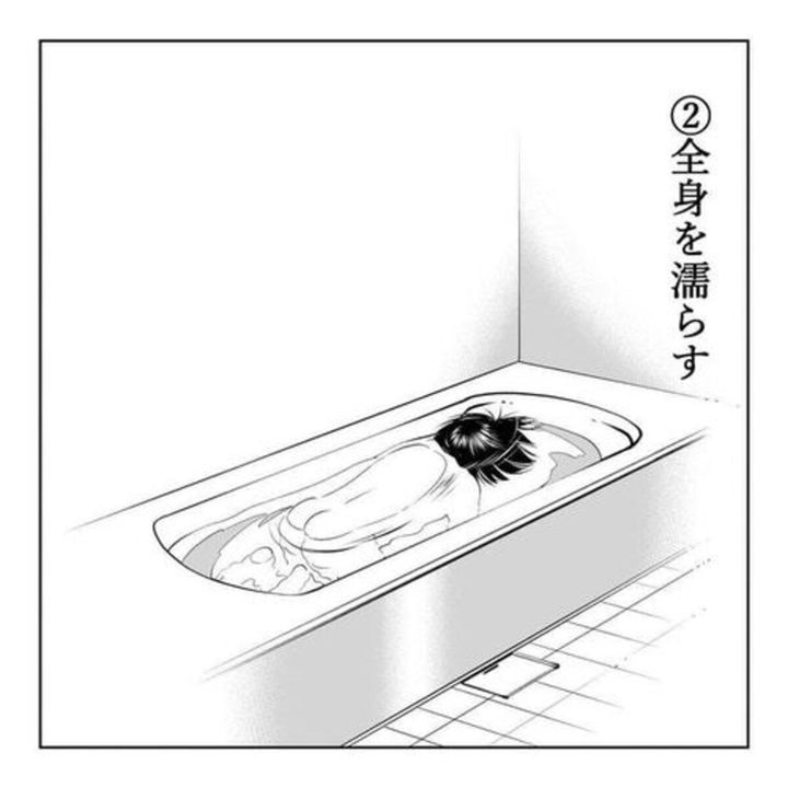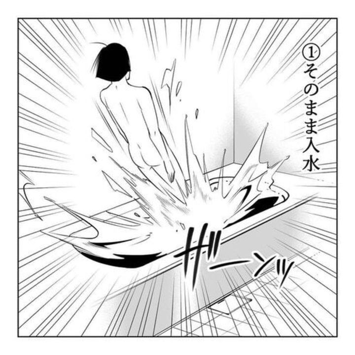 寿 ニンカシさんは、男の子2人の兄弟をワンオペで育てているお母さん。子どもが寝付いたあとにお風呂に入る際は、究極の時短風呂に挑戦!勢いよく衣服を全部脱いだら、お湯を張った湯船にスタイリッシュに入水、そのまま全身を濡らします。湯船に入ったまま高速で髪を洗い、そのままの流れで体を洗ったら再び湯船にドボン。豪快に湯船で洗い流せば、およそ2分半で終わる高速時短風呂タイム終了です。