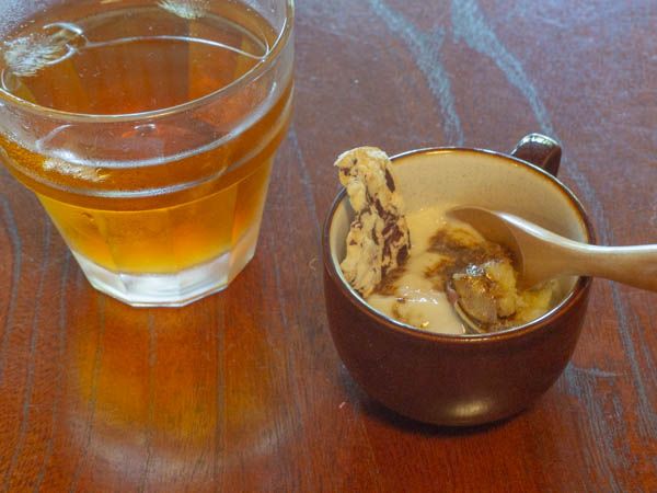 デザートには、さつまいもや穀物コーヒーのシロップがかかった豆乳くずプリン。こちらも優しいお味で、身体が喜ぶ甘さだなぁと思いました♪ そしてプラスで、ハーブteaのアップルシナモンをオーダー。