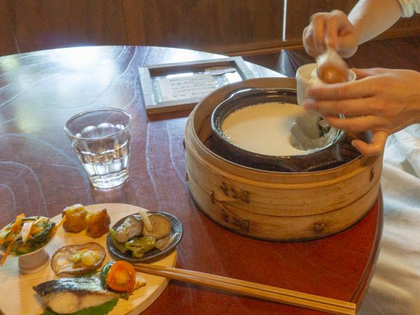 蒸籠からすくってくださる出来立てのお豆腐は、なんだか贅沢!
