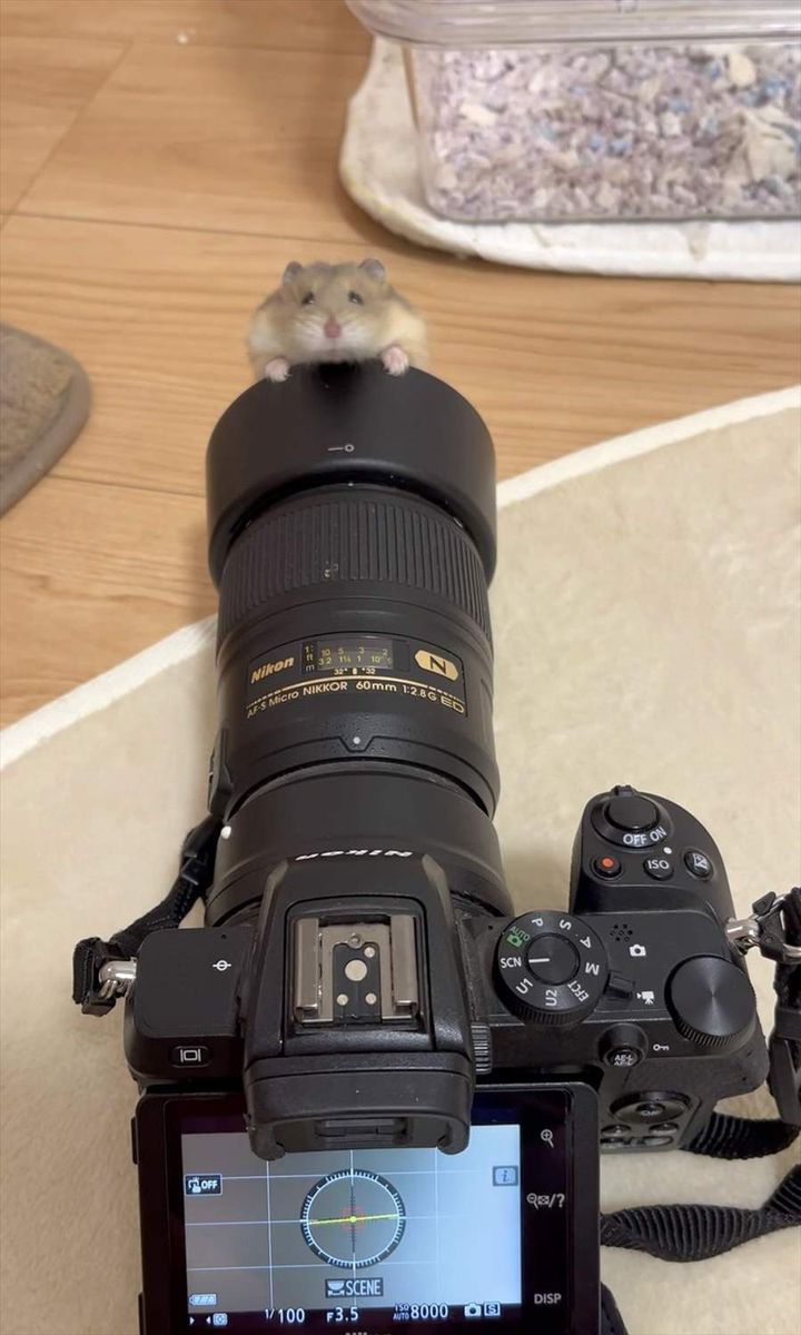 ハムスターがカメラにぎゅっ!しがみついている姿が話題に「好奇心旺盛ですね~」「カメラが撮る道具じゃなくて 撮られる道具になってる」
