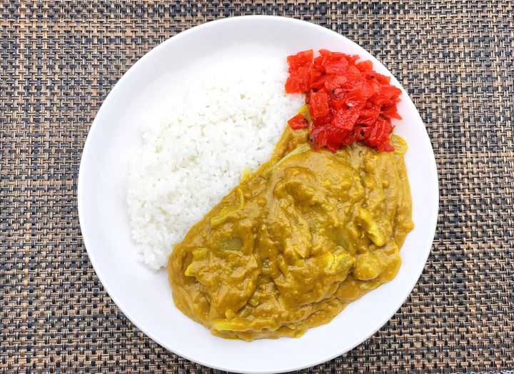 多めに見える福神漬けですが、赤白黄色のこの彩りと味は福神漬けなしでは成立しません。