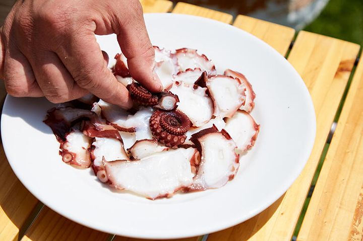 □鮮烈な香りが食欲をそそる“タコのハーブカルパッチョ”