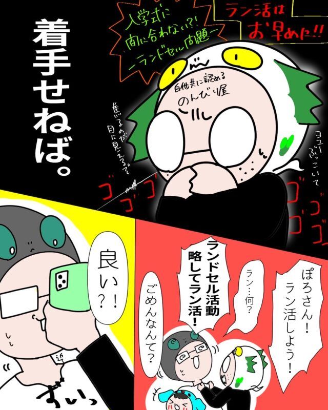 長女しょごーきちゃん、長男にごーきくんの姉弟を育てるにょろ。さんから、しょごーきちゃんのラン活のお話です。年長さんになって張り切るしょごーきちゃんを感慨深く見ていたにょろさんは「ラン活」を思い出してハッとしました。