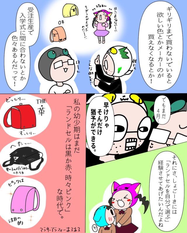 「選ぶのに時間がかかる」「選んだ色を後悔している」「入学式に間に合わない」などなどトラブルもある模様。